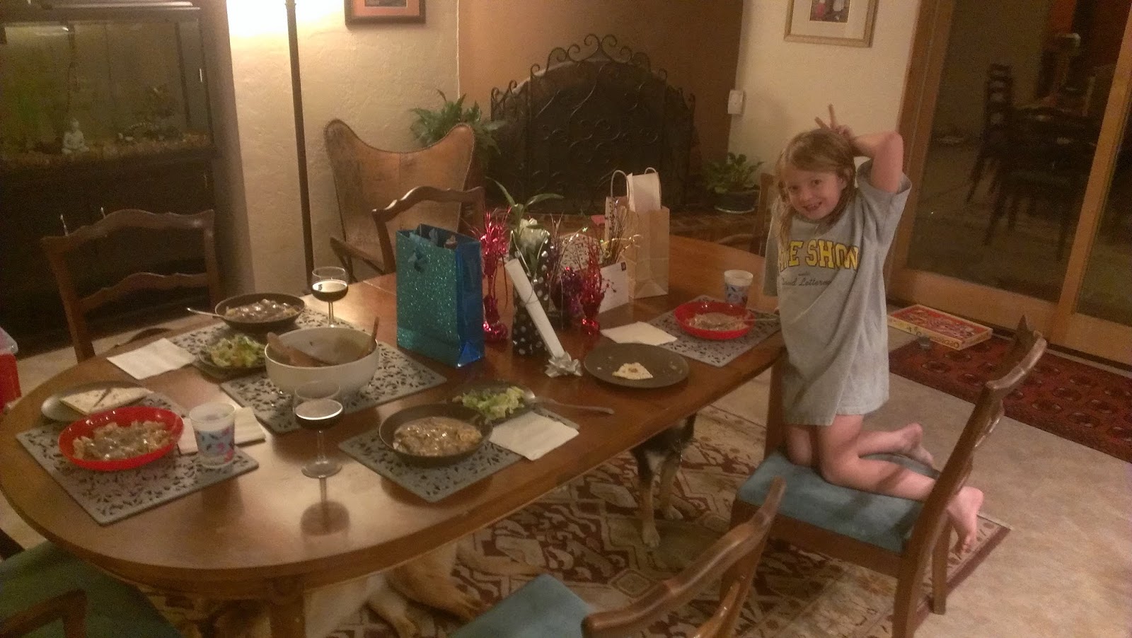 For Daddy's birthday we had a night full of special surprises. First we made him a great special meal (Beef Stroganoff) and then we played his (well, it's really our) favorite board game, Payday!!!